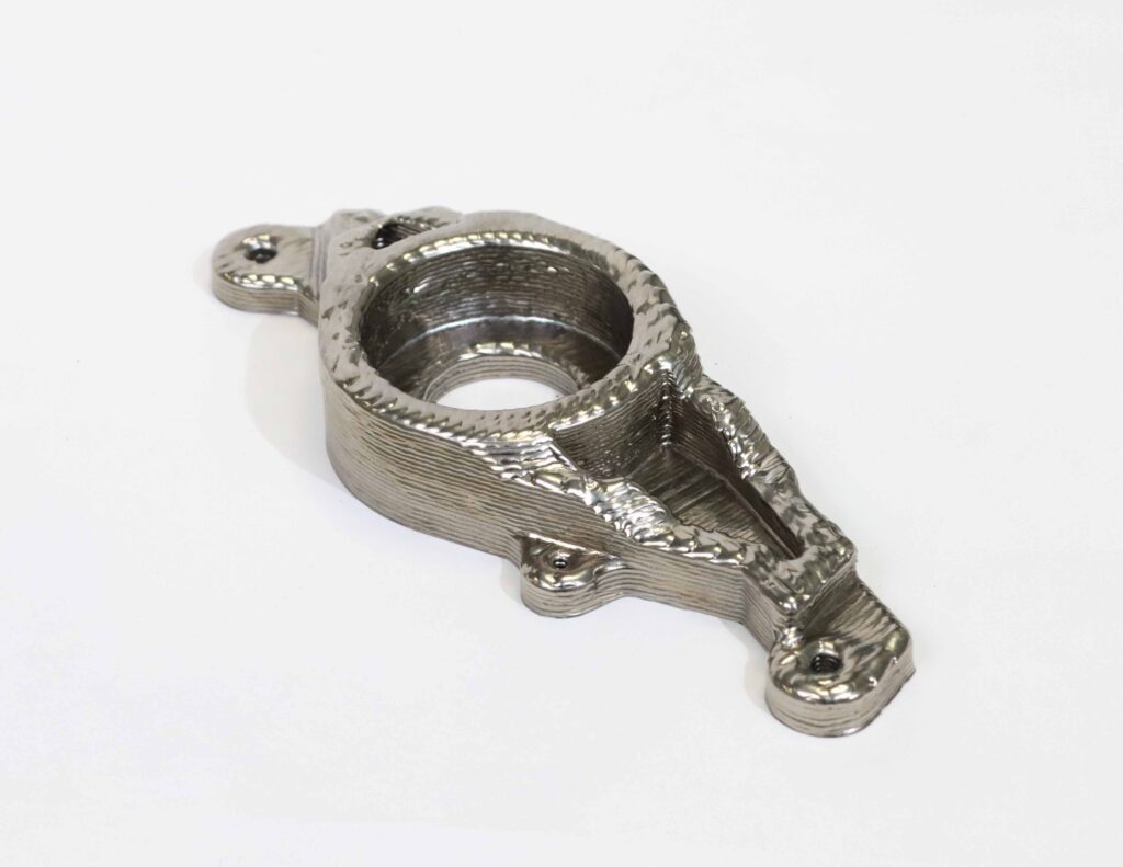 Flap actuator for the aerospace sector developed by Meltio. Manufactured in Titanium 64 on the M600, this element weighs solely 0.67 kg, showcasing the benefits of light-weight, high-strength additive manufacturing for aerospace techniques.