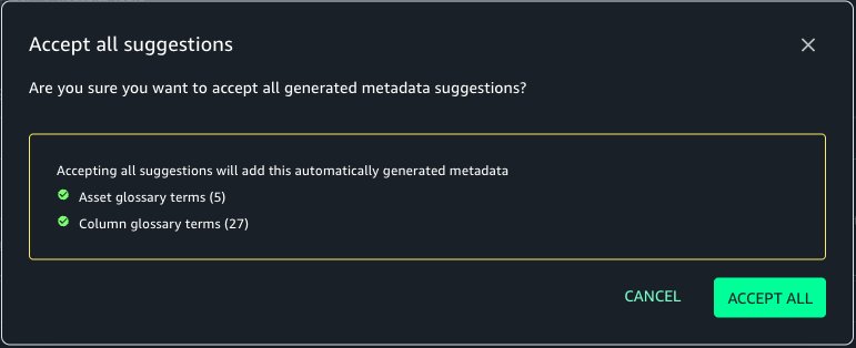 AI suggestions for glossary phrases mechanically analyze asset metadata and context to find out essentially the most related enterprise glossary phrases for every asset and its columns. As a substitute of counting on guide tagging or static guidelines, it causes in regards to the knowledge and performs iterative searches throughout what already exists within the setting to establish essentially the most related glossary time period ideas.