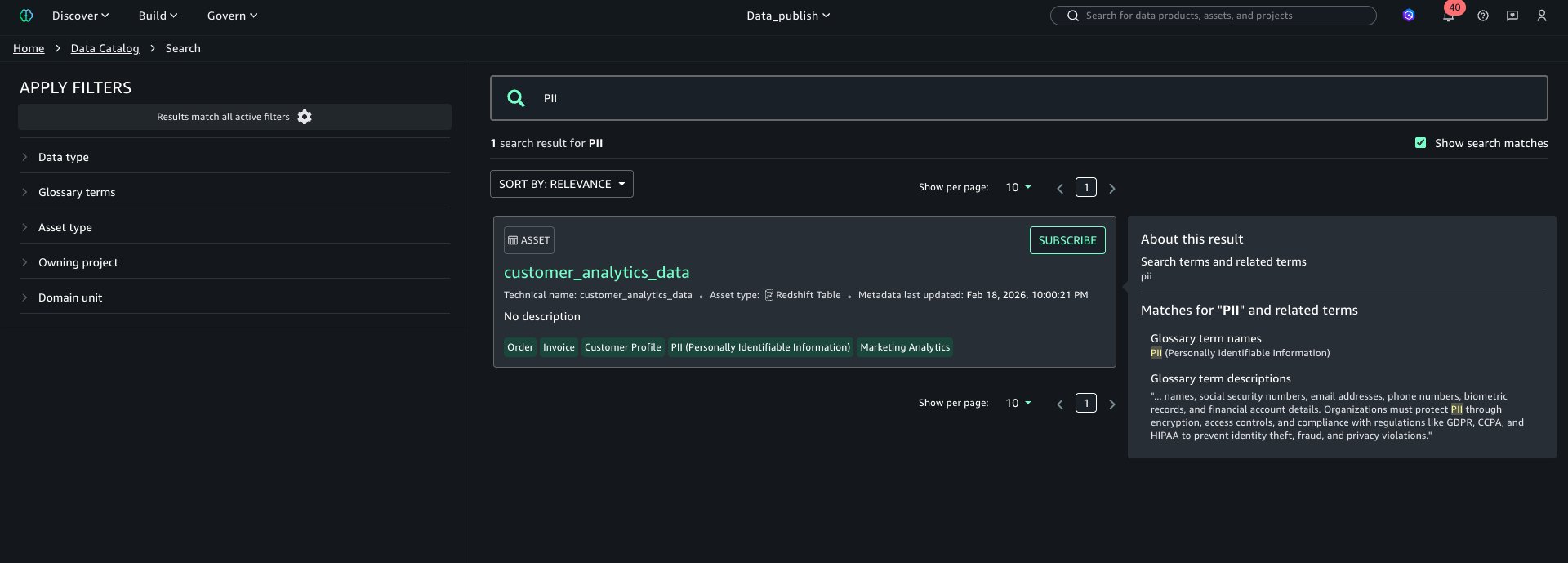 Handbook tagging doesn’t scale successfully. Knowledge producers interpret enterprise phrases in another way, particularly throughout domains. Essential labels like PII and PHI get missed as a result of the publishing workflow is already advanced. After belongings enter the catalog with inconsistent terminology, search performance and entry controls rapidly degrade.The answer isn’t solely higher coaching—it’s making the classification course of predictable and constant.