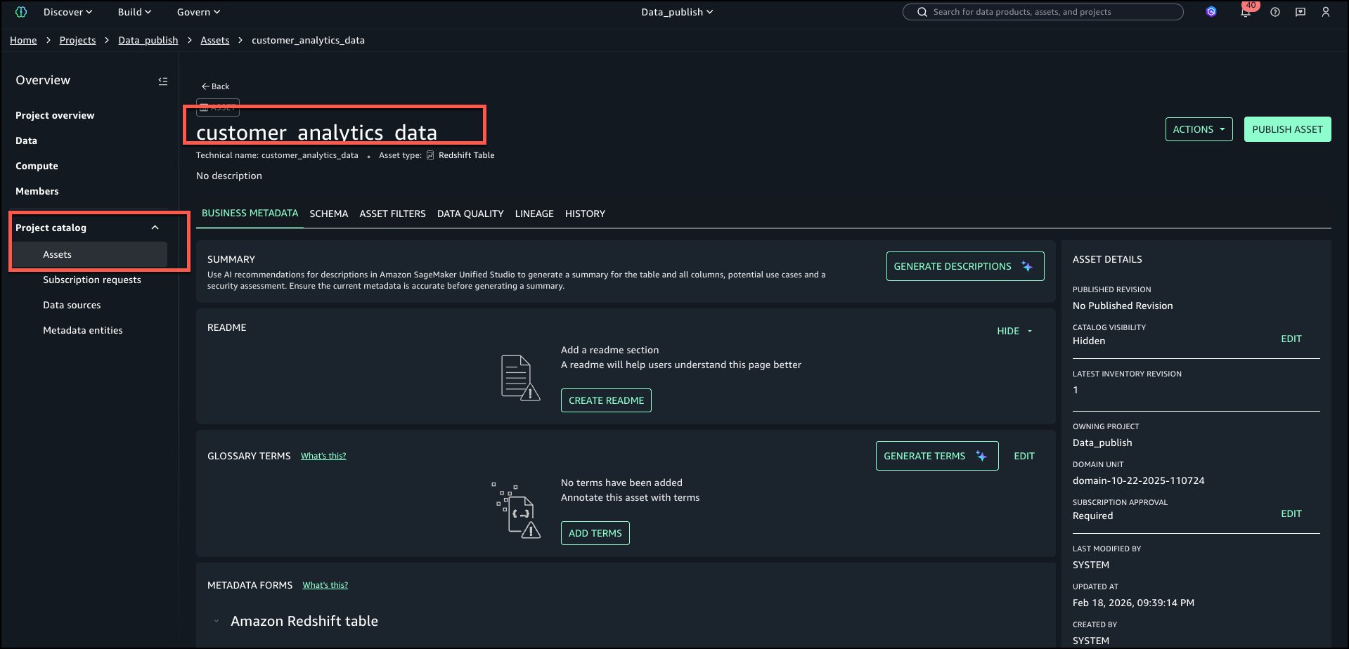 To observe alongside, it’s essential to have an Amazon SageMaker Unified Studio area arrange with a website proprietor or area unit proprietor permissions. It’s essential to have a challenge that you should use to publish belongings. For directions on establishing a brand new area, check with the SageMaker Unified Studio Getting began information. We will even use Amazon Redshift to catalog knowledge. If you’re not acquainted, learn Be taught Amazon Redshift ideas to study extra.