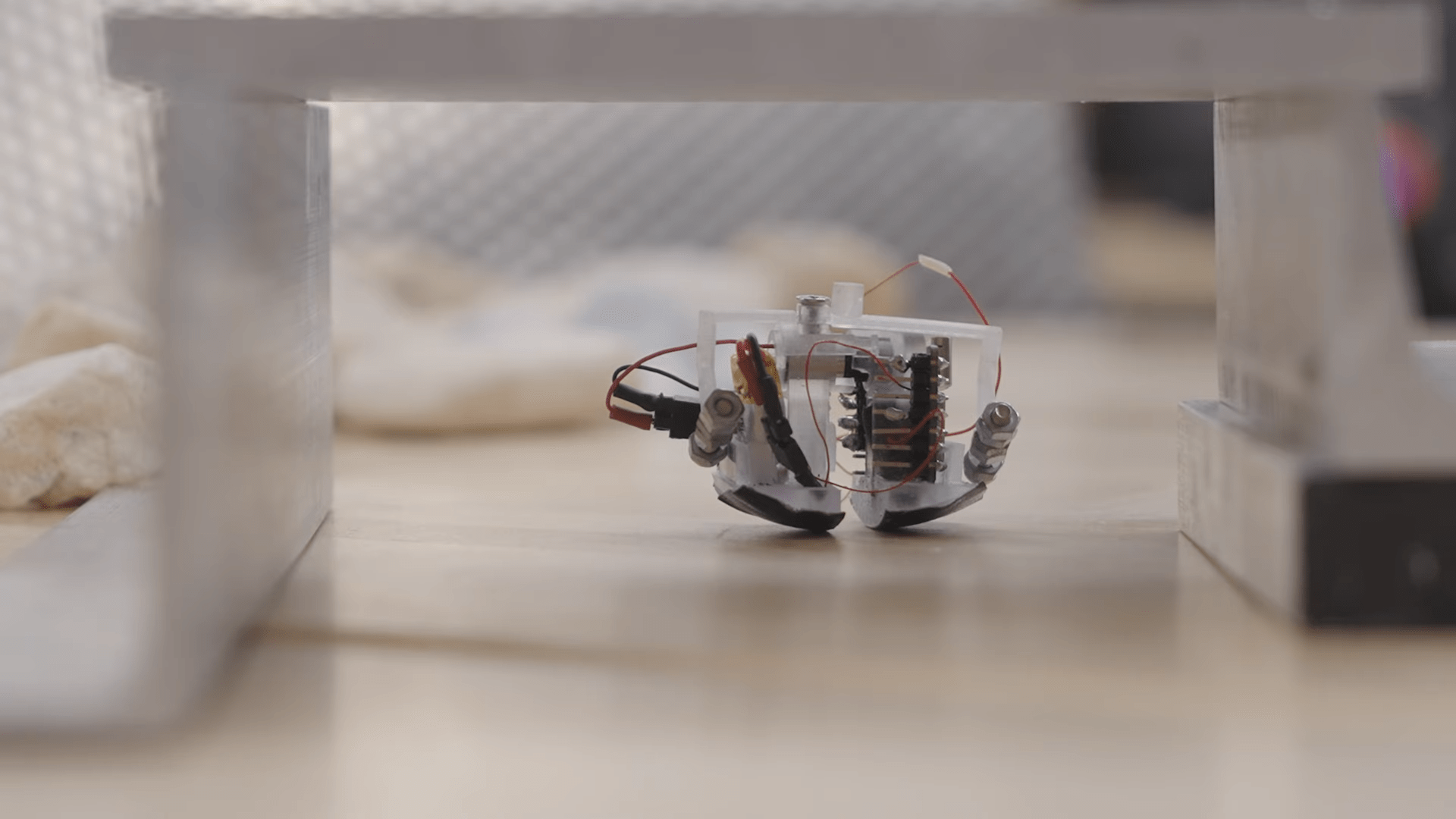 Regardless of its small measurement of just below 1.5 inches tall, Zippy can do extra than simply stroll. It’s able to ranging from a standstill, turning, skipping, and even climbing small steps. All of those actions are made attainable by a intelligent mechanical design. First, the robotic’s entrance leg lifts to shift Zippy’s heart of gravity. This movement, and the curved form of its ft, helps to swing the rear leg ahead a full step with a mechanical onerous cease performing as a joint restrict for its hip.