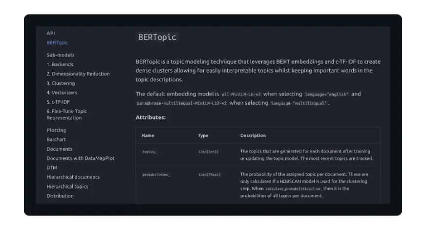 Reasonably than relying solely on phrase frequency, BERTopic leverages the construction of semantic house to determine patterns in textual content knowledge. Its modular design additionally makes it adaptable to a variety of functions, from analyzing buyer suggestions to organizing analysis paperwork.